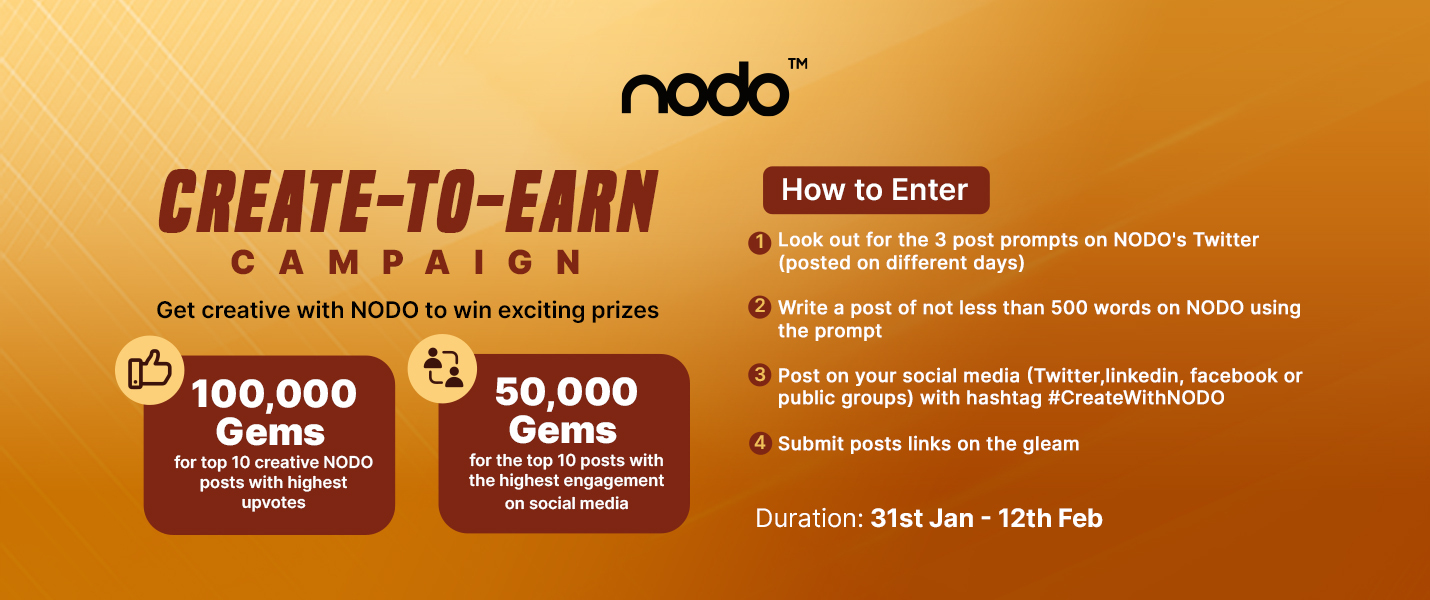 NODO presents an exciting opportunity to showcase your creativity and win fabulous prizes in the NODO Create to Earn campaign.